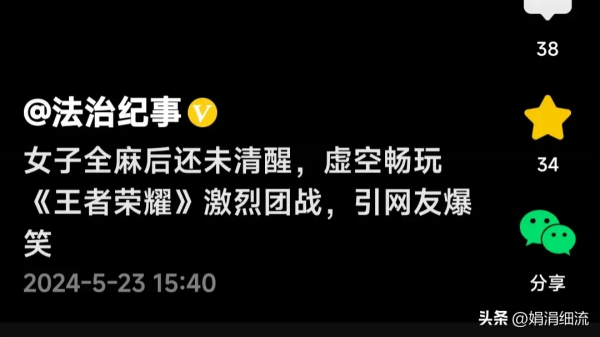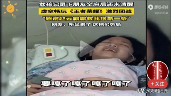 我把视频链接粘贴到这,不相信的朋友可以点开视频链接看一看。女子全麻后还未清醒,虚空畅玩《王者荣耀》激烈团战,引网友爆笑