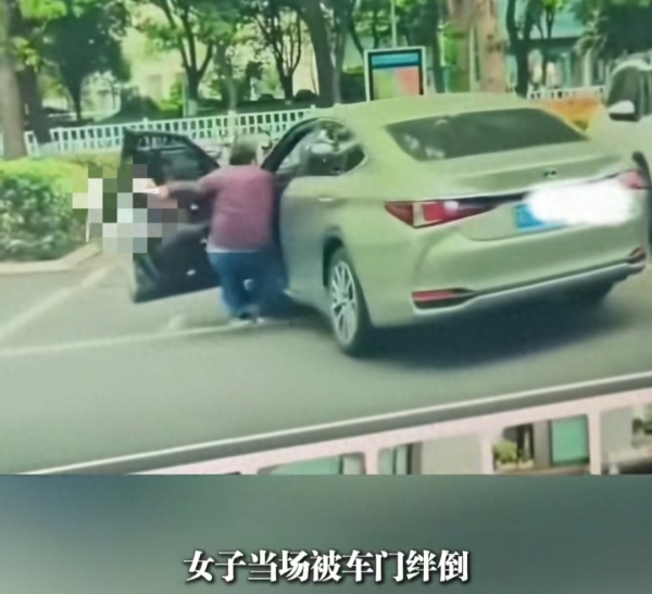 致命的是她忘记拉手刹,很多司机都有这毛病,因为路面是个斜坡,失去制动的车辆在开始缓慢、无声地向后溜车。在她惨遭绊倒,车辆向后溜,车门却还开着,严女士的身体还在车门外,向后滑动的车门直接卡在她的腿上,整个人面朝地被绊倒。