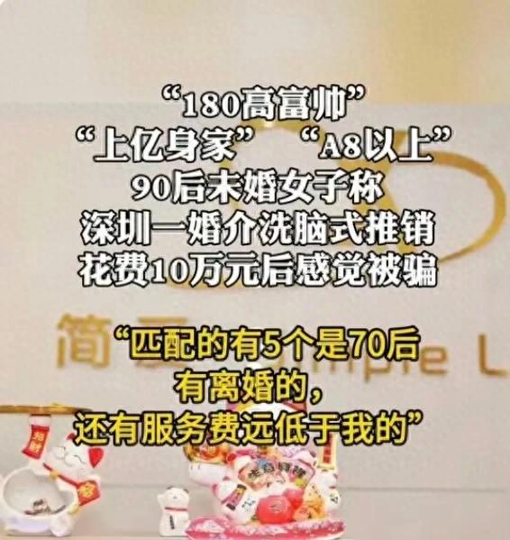 她在一家婚恋机构交了10万块服务费,想着能找个条件不错的另一半。机构说得天花乱坠:我们是做高端婚恋的,资源都是A8(千万级)身家以上,以你的形象气质,A8.5以上都没问题。