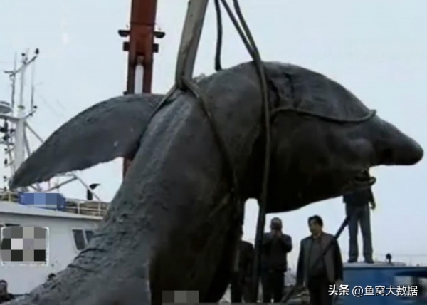 吊车把大鱼吊起来以后,大家拿卷尺简单地测量,发现这条大鱼足足有7.5米长。起重数据显示,这条大鱼超过10000斤。