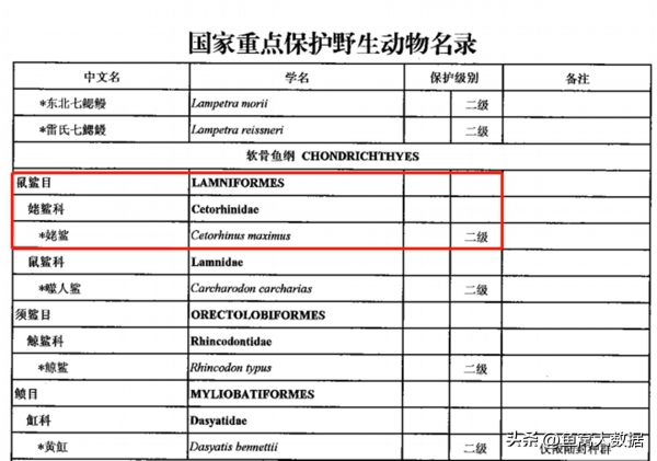 2021年版国家保护野生动物名录-姥鲨