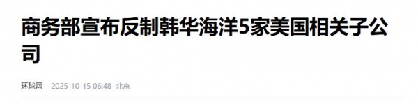 中方点名韩华海洋5家美国子公司,反制清单公开,韩国当局紧急应对。