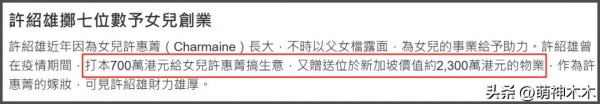 也不怪网友对他年近80岁还在娱乐圈打拼感到吃惊,许绍雄的家底不是一般雄厚,曾豪掷700万港币(人民币约641万)给女儿许惠菁做生意。
