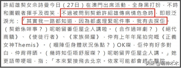 提及许绍雄病情,佘诗曼也透露自己一直都知情,还透露去年和许绍雄合作的时候,对方的身体还没大碍。没想到一年的时间,情况突变,《正义女神Themis》也成为许绍雄最后遗作。