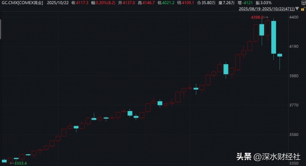 22日开盘之后,纽约黄金期货一度继续跳水超过2%,但是随后又被拉起,重新站上4100美元上方。