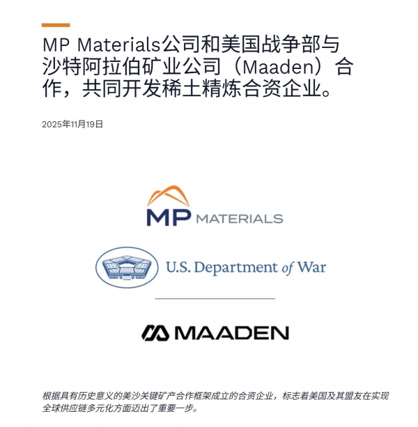 再说战略安全,稀土是高端武器、磁铁、电动车电机、风力发电等关键材料,美国参与意味着沙特能在军工和战略产业上保持独立性。如果完全依赖中国,万一中沙关系紧张,技术和供应都会受限。还有政治和地缘关系,沙特和美国是传统盟友,美国愿意在稀土产业上帮沙特起步,哪怕美国自己也受制于中国,但在沙特眼里,美国更可靠、更可以谈判、也更容易共享技术,同时不会像中国那样占据主导地位。沙特和中国这几年在经济贸易上虽然合作越来越多,但是在安全和政治上,并没有沙特和美国绑定得那么深。