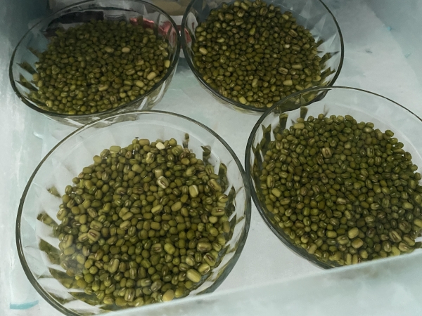 无论是绿豆还是红豆,先清洗干净,然后用热水浸泡一段时间,装在容器中。一定要用热水,因为热水可以让豆子吸收水分,变得饱满,同时可以洗干净豆子,更加卫生。