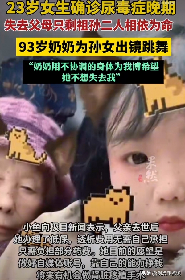 很多人不知道,尿毒症患者的肾移植手术,不只是要钱,还要等合适的肾源,就算钱凑够了,也得排好久的队,小鱼白天透析,晚上熬夜干活,她没喊过一句苦,奶奶的舞步,就是她撑下去的底气。