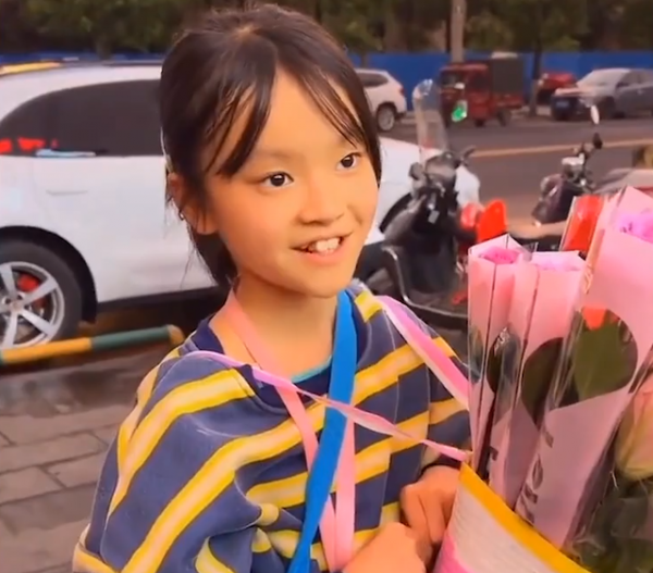 近日,在湖南常德,一名长相乖巧的小女孩带着一桶花在街上进行售卖,但她路过两名男子的时候,并没有把花卖给这两个人。这两名男子看到了这个勤工俭学的女孩子,对于她不把花卖给他们的举动十分疑惑,于是上前去找这位小女孩。
