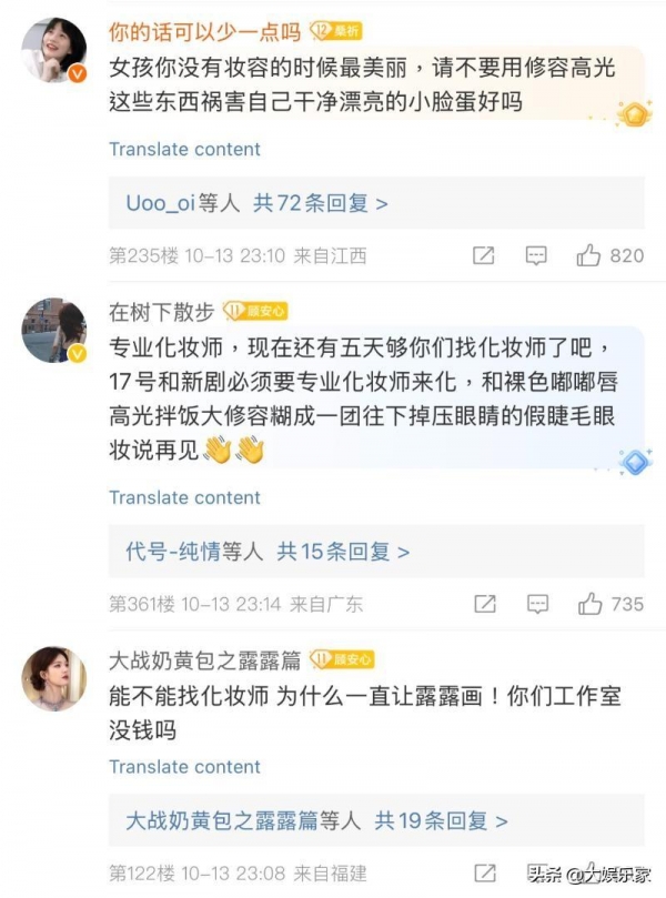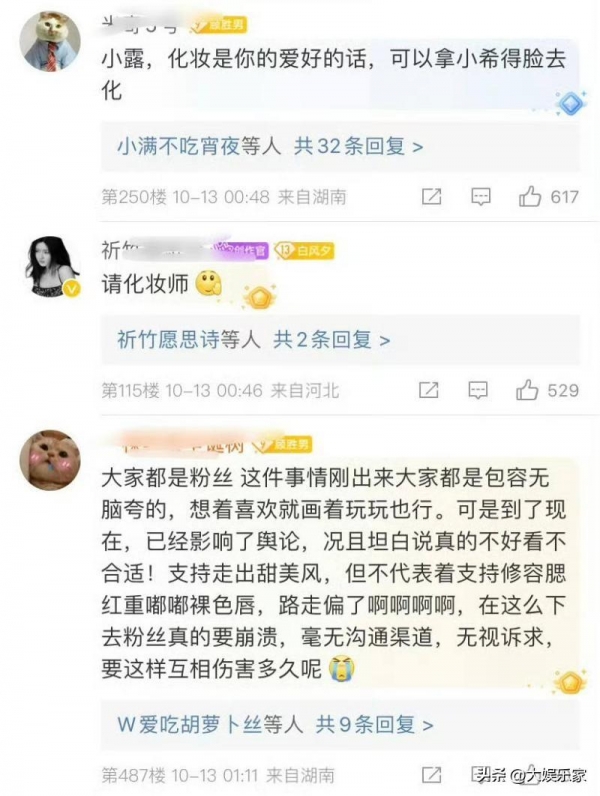 这次这个舞台妆,也被吐槽网红味太浓,于是工作室的评论区直接沦陷,纷纷在吐槽。