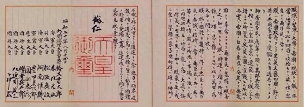 据悉,《终战诏书》是日本接受《波茨坦公告》同意无条件投降的关键文件,于1945年8月14日由日本天皇亲自宣读并录音,次日通过广播正式对外公布,宣告日本无条件投降。
