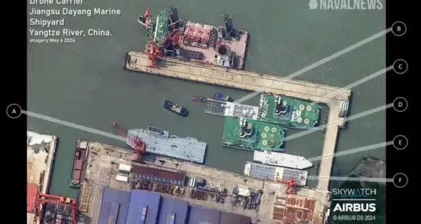 如此大型的舰艇建造进度也是相当惊人。舒加特的卫星图像显示,该舰8月份还在造船厂干船坞中,9月至10月中旬短短一个月内就完成了下水。这一迅速下水的速度,与近年来中国在海军舰艇建造上的高效节奏一致,也再次让西方观察者对中国造船业的效率深感震惊。