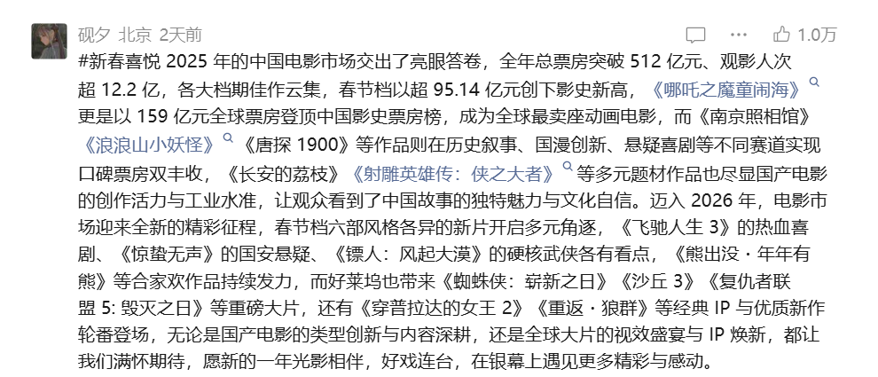 2026年春节档,好戏云集。这里有笑有泪,有侠有梦,有穿越时空的冒险,也有贴近生活的温暖。