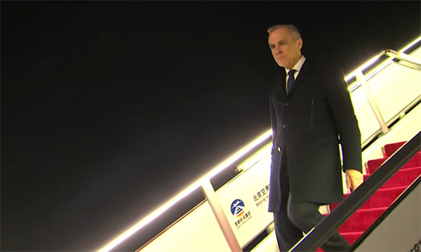 1月14日晚,加拿大总理卡尼乘机抵达北京首都国际机场 视频截图