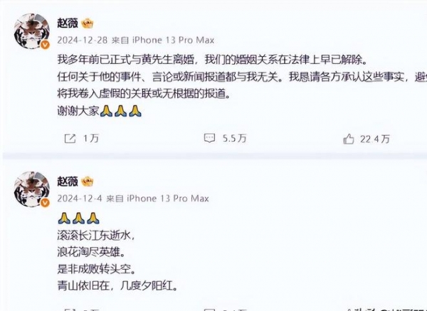 但2024年底,沉寂许久的赵薇却再次出现在公共视野里,这次她打起了"感情牌",似乎是在试探群众对她的包容度。