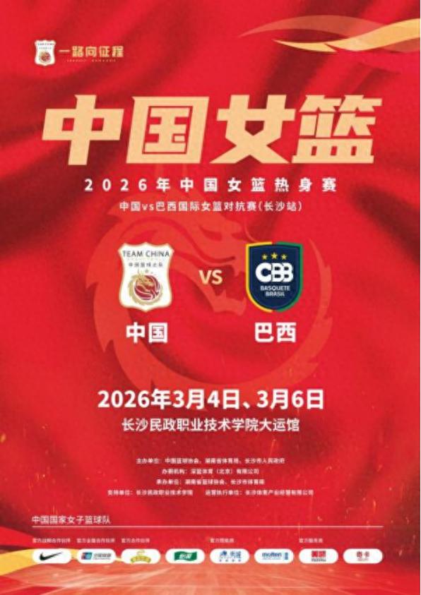 红网时刻新闻2月4日讯(记者 贺卫玲)2026年国际篮联女篮世界杯资格赛将于3月中旬打响,中国女篮备战进入冲刺阶段。3月4日、6日,中国女篮将在长沙民政职业技术学院大运馆迎战南美劲旅巴西女篮,上演新春国内主场首秀。两场热身赛既是检验集训成效、磨合战术体系的关键实战,更是以"无畏金兰,星城砺剑"之姿,为世界杯资格赛蓄力的新春第一战。