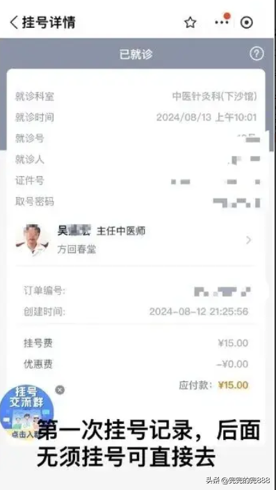 9月12日,医馆的工作人员回应称这名医生已停诊,医馆官网也已经删除了他的相关信息。