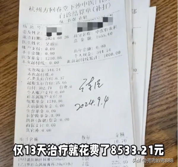 这吴大夫不仅手不正经,开的医药费单子也是乱来,仅仅13天的治疗,就开出了8533.21元的医疗费,其中还包括了王女士并没有做过的刃针治疗。