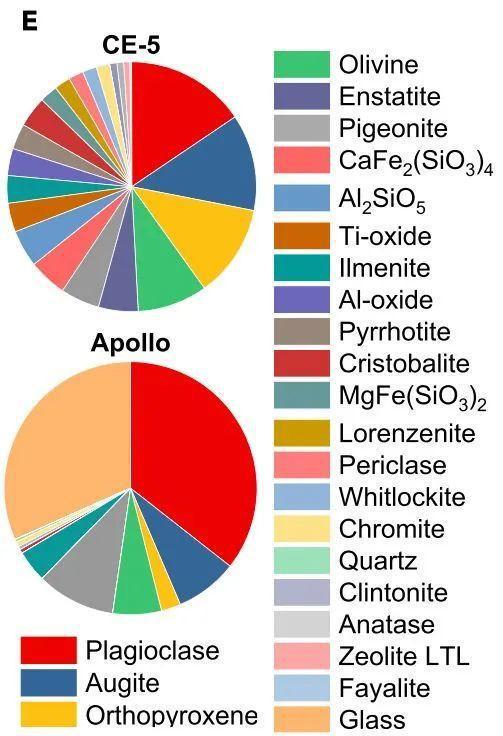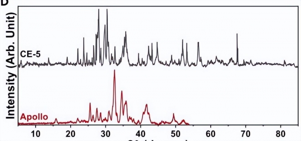 但是实际上,下图是通过 XRD machine learning分析的中美月壤,图中上部为嫦娥五号的月壤,下部为阿波罗(Apollo)的月壤.