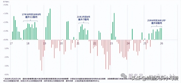 租赁市场表现同样强劲,租金市场在2022年的大跌之后就开始见底回升,2023、2024年租金反弹,2025年租金延续涨势,截止2025年12月末,中原城市租金指数同比上升约5.2%。