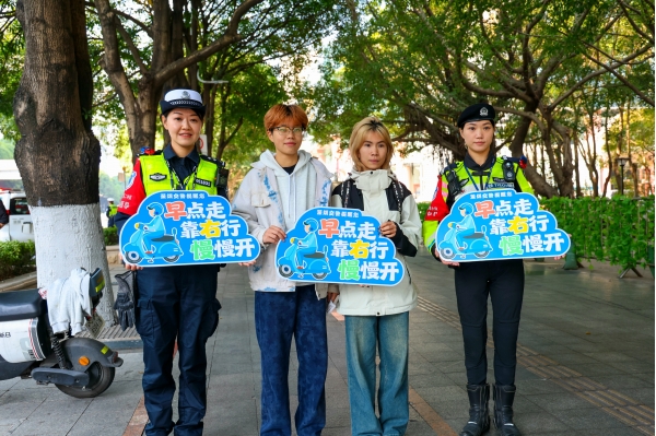 链路整治不仅有"力度"也有"温度"。此次整治中,交警女铁骑也融入链路管控,她们手持安全提示牌,化身"安全宣传员",对违法驾驶人开展面对面警示教育,通过互动交流强化驾驶人安全意识,并耐心叮嘱骑行人"早点走、靠右行、慢慢开",以柔性劝导进一步夯实链路管控的教育成效。