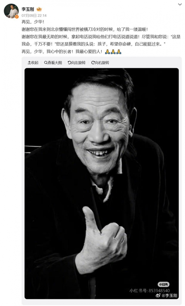 不光是郭德纲,文艺界的李玉刚也专门发文悼念他,表示她曾在最低谷、最不被认可的阶段,受到杨少华的保护和认可,让他能逐渐走出阴霾,迎来自己事业的辉煌期。
