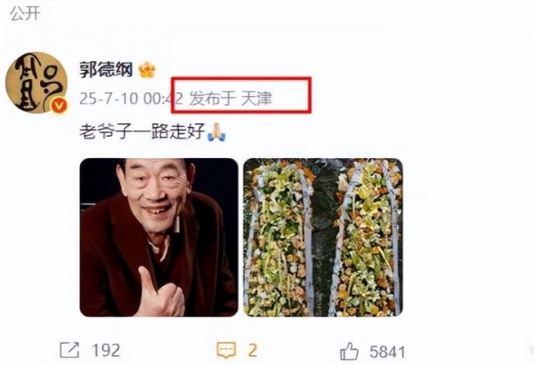 于是杨少华去世后,郭德纲是毫不犹豫地在社交平台发布相关动态,动态的IP地址还显示他是在天津,也就是杨少华去世的地方。