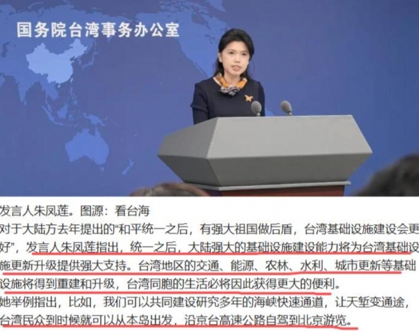 朱凤莲明确表示,和平统一将是台湾基础设施、新型基础设施焕然一新的起点。