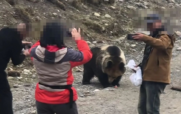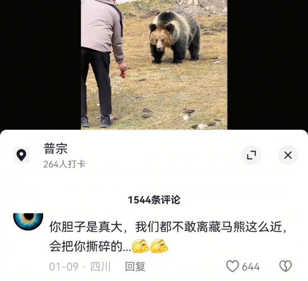 更典型的例子,就是在网络上,你可以看见很多的游客主动靠近西藏棕熊,别名藏马熊。