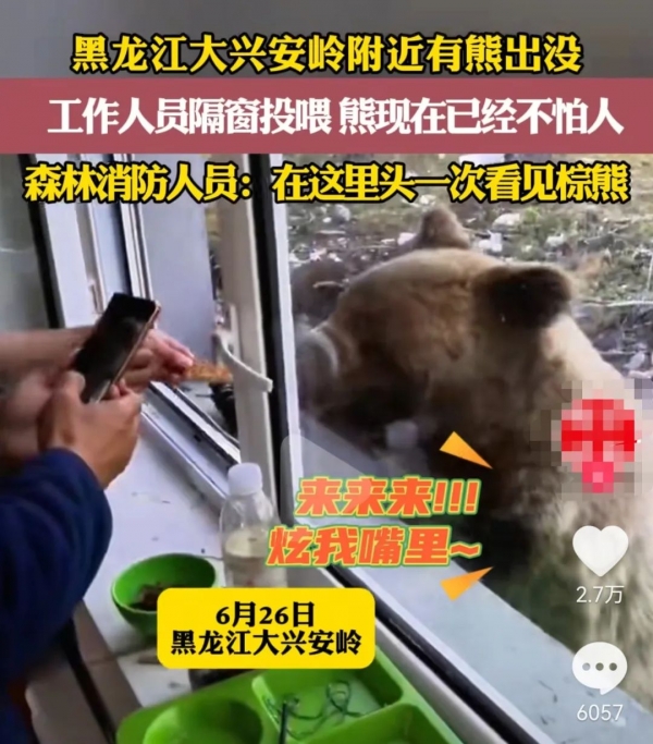 就比如下面这个新闻报道,2024年6月在黑龙江的大兴安岭,附近有熊出没,当地的自然保护区的森林人员说了这样一段话: