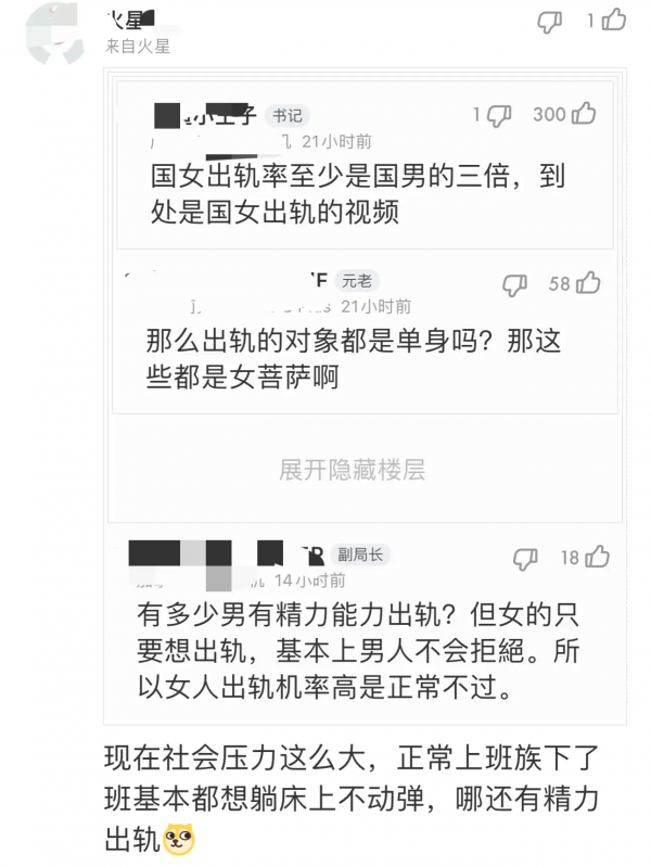又有的网友对女子出轨表达了自己的看法,认为女方出轨比男方更为容易;