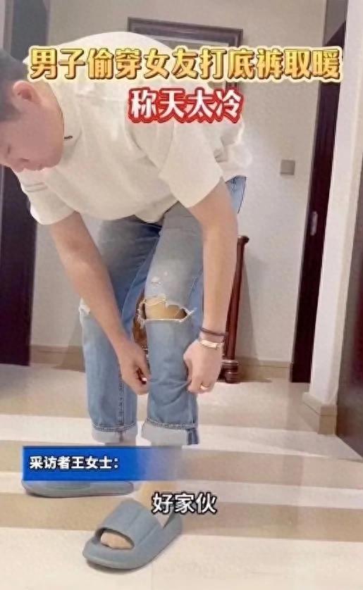 男子坚称,他的女友的打底裤非常暖和,而且颜色也很潮,所以他觉得穿上会很时尚。他还开玩笑地说:"女友的衣服总是特别暖和,我可不想在这么寒冷的天气里冻感冒。"这个解释引来了一阵笑声,但也引发了一些争议。