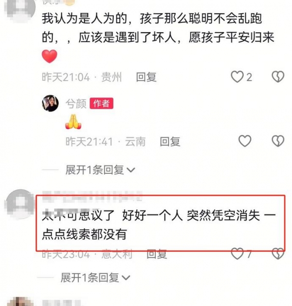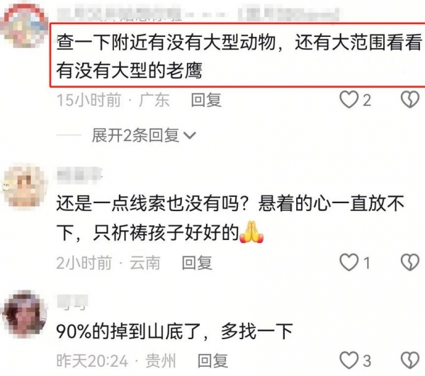 搜寻未果,网友们纷纷为家人祈祷。大家都为这个小女孩感到难过,恨不得自己也能帮忙找到她。有人建议扩大范围,甚至猜测附近可能有大型动物,也许能找到一些线索。每个人的心情,都在这件事中波动,失踪女孩成了大家共同牵挂的人。