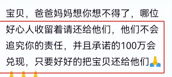 时至今日,女孩失踪已经超过了45天。人们开始慢慢忘记这件事,但家里人却从未放弃。每一个夜晚,他们都会幻想,女孩也许躲在某个角落,只是找不到。昨日,姑姑发文,含泪恳求"好心人"带她回来,说不追究任何责任,百万赏金等着兑现。说这话的时候,她已经不再纠结那个模糊的"失踪"真相,而是希望孩子能平安归来。