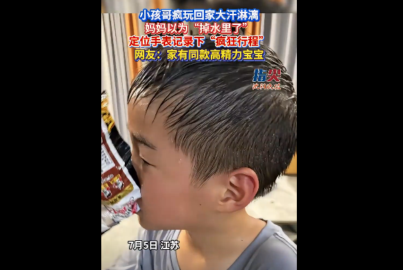 7月5日,江苏,小孩哥疯玩回家大汗淋漓,妈妈以为"掉水里了",定位手表记录下"疯狂行程",走遍小区每一栋。