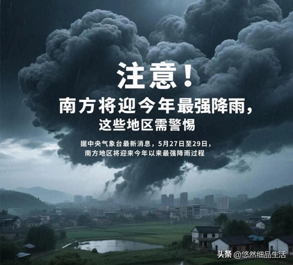 据中央气象台最新消息,5月27日至29日,南方地区将迎来今年以来最强降雨过程。此轮降雨范围广、强度大,单日降雨量更是不容小觑,且与前期降雨偏多地区多有重合,致灾风险极高,需引起大家的高度重视。