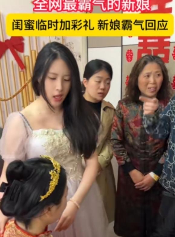 山东烟台有人结婚,新娘叫周晓棠。那天她穿婚纱等着新郎来接,结果闺蜜林晓薇在场上面前撺掇她临时要多要彩礼。这事后来闹得挺大,网上到处都是视频。