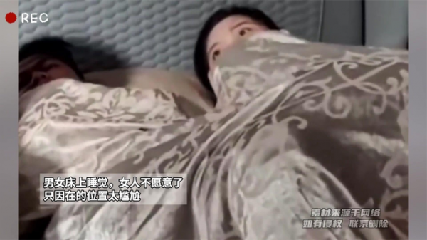 男女床上睡觉,女人不愿意了,只因在的位置太尴尬。