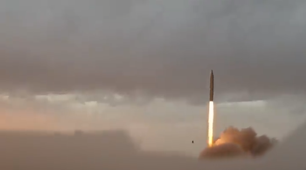 伊朗在"真实承诺4号"行动第30、31波袭击中发射导弹。 视频截图