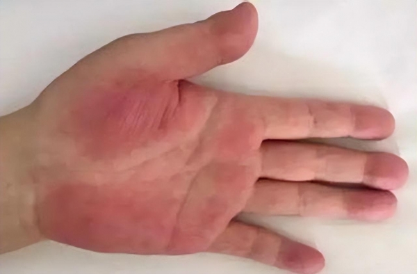 如果你发现自己手掌部位出现了异常发红的问题,而且特别是在大小鱼际处用手按压会呈现白色,松开手立即恢复到红色。