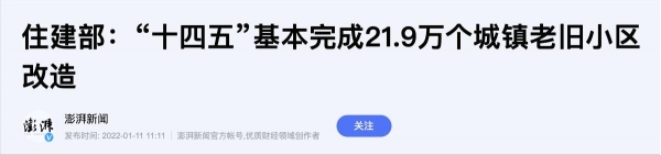 再者,2022年2月24日,住建部部长王蒙徽发声定调:2022年推进城镇老旧小区改造。通过吸引社会力量参与、创新金融支持方式、促进存量住房用途调整等措施,把这项重大的民生工程,同时也是发展工程做好。