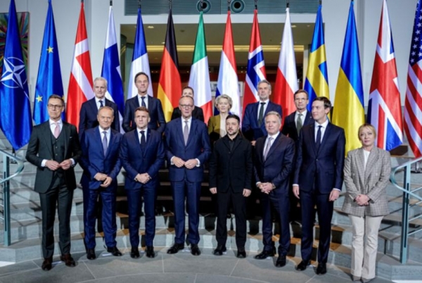 就在同一天,欧洲多国领导人在柏林紧急开会,宣布要组建一支"欧洲主导"的多国部队协助乌克兰。