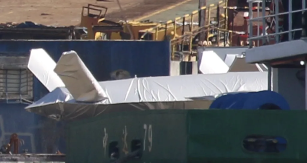 最初的照片只有这种无人机的后部照片,新的图像则展示了无人机的全貌。这架无人机被防水布覆盖,位于"集装箱武库船"的后方。其他照片则证实至少一架隐身制空无人机登上076型两栖攻击舰的甲板。