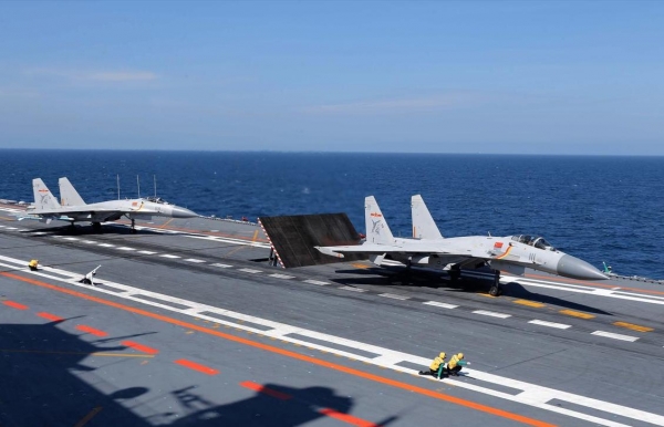 为维护训练安全与合法权益,中方随即从辽宁舰起飞歼-15舰载战斗机进行应对。