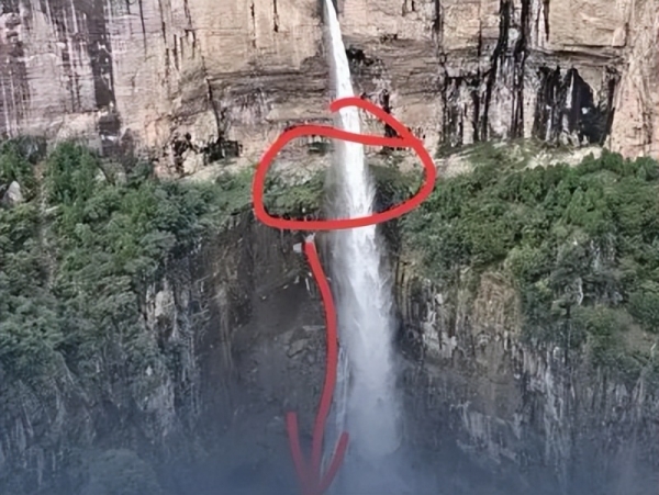 这二道崖离下面的水潭有100米高不算矮了,可小伙子为了拍张能在朋友圈"炸街"的照片,让同行的人帮他拍,拍完还特意往悬崖边凑。