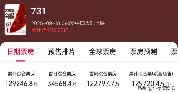 其实不怪大家揪着《731》聊,现在院线里大盘票房一直小火慢炖,本来工作日就没啥期待,一切照常发展也没人想多八卦。《731》之所以讨论度拉满,就是因为开局冲得太猛。6天12.9亿啊,多大的体量?靠情绪+纪律推动,这数值已经算是历史级别的开端。不过说实话,影院里不少观众就是奔着题材意愿而来,对质量并没有十分上心。可网上一搜口碑,外网评分2.7,演技、特效各种吐槽都起来,这热情很快就冷却,谁也不想当"情怀韭菜"对吧?