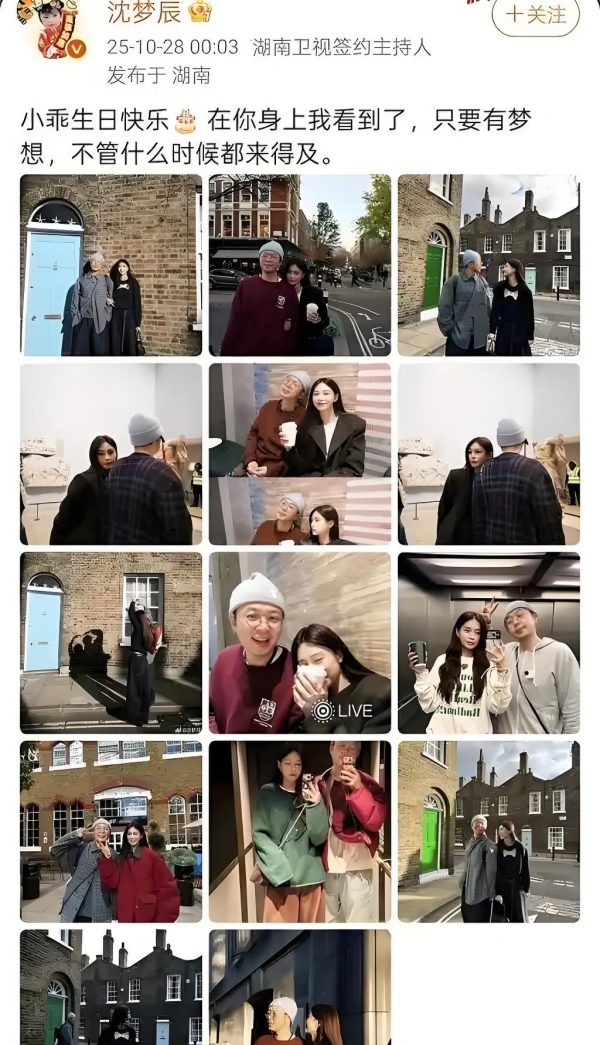 2025年10月,沈梦辰赴英国陪伴杜海涛游学,在其毕业典礼献吻;生日时晒18宫格合照,昵称"小乖"延续8年爱称。