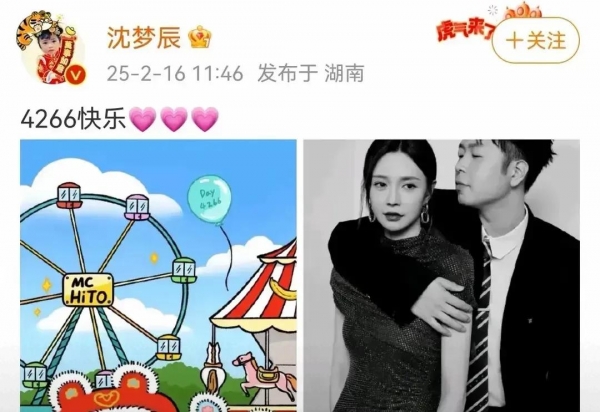 2025年2月,两个人庆祝结婚三周年,发文"4266快乐"(象征相识天数)。