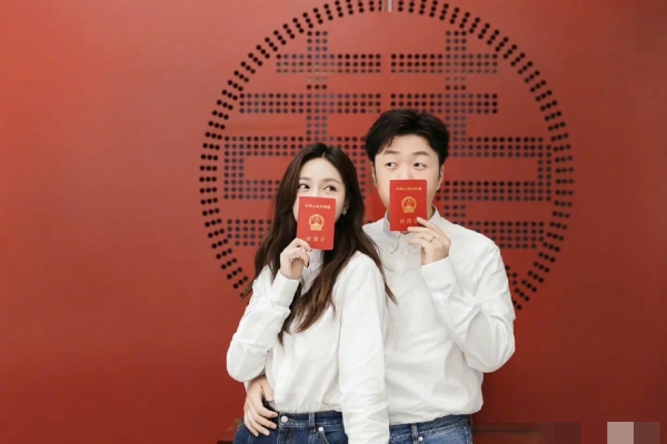 2022年2月17日,两个人官宣结婚,卡点沈梦辰生日(6月13日)晒结婚证,配文"天上的喜鹊叫乖乖"。