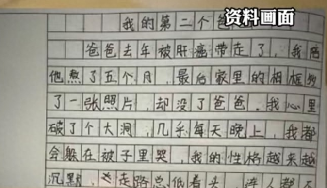 写这篇作文的女孩名叫佳佳,今年12岁,她是山东人。2024年父亲因病去世,母亲身患残疾,没法再照顾她,老家再也没有其他亲人。